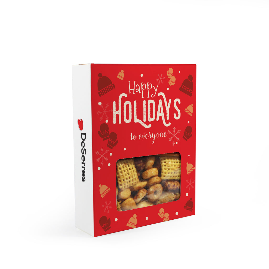 A classic gift box with lots of room for branding and treats. This customizable design features a clear window to showcase the sweets inside and can be personalized on every side with your logo, artwork, or message. Choose from over a dozen fill options—from candies to chocolates and nuts—for a polished package that’s perfect for giveaways, client gifts, or event handouts.