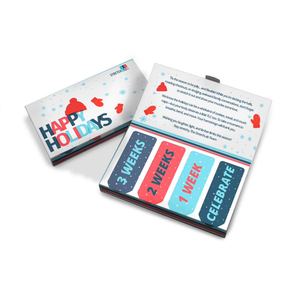 Use it as a 4-day or 4-week countdown, or simply as “4 reasons to smile.” With full customization inside and out, it offers tons of branding space and a fun, interactive way to connect with clients, countdown to the holidays, or celebrate special occasions.